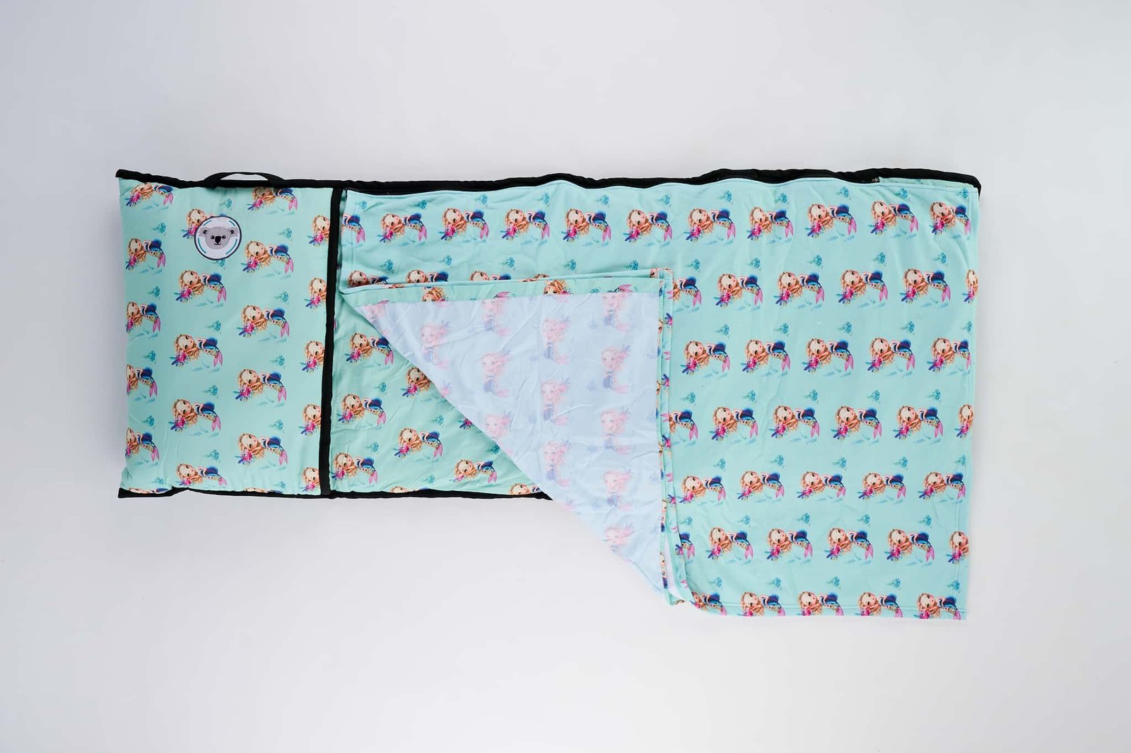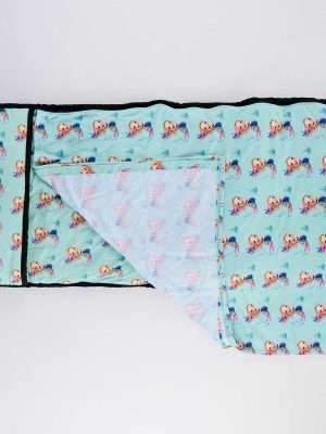 Our magical Mermaids Sleep Mat is part of our luxury line as it comes with sublimated sheet and polar fleece blanket, as-well as an extra thick layer of padding making it even more comfortable. A bold design of a pretty mermaid on a sea green background will have you little one nodding off in no time dreaming of mermaids and swimming